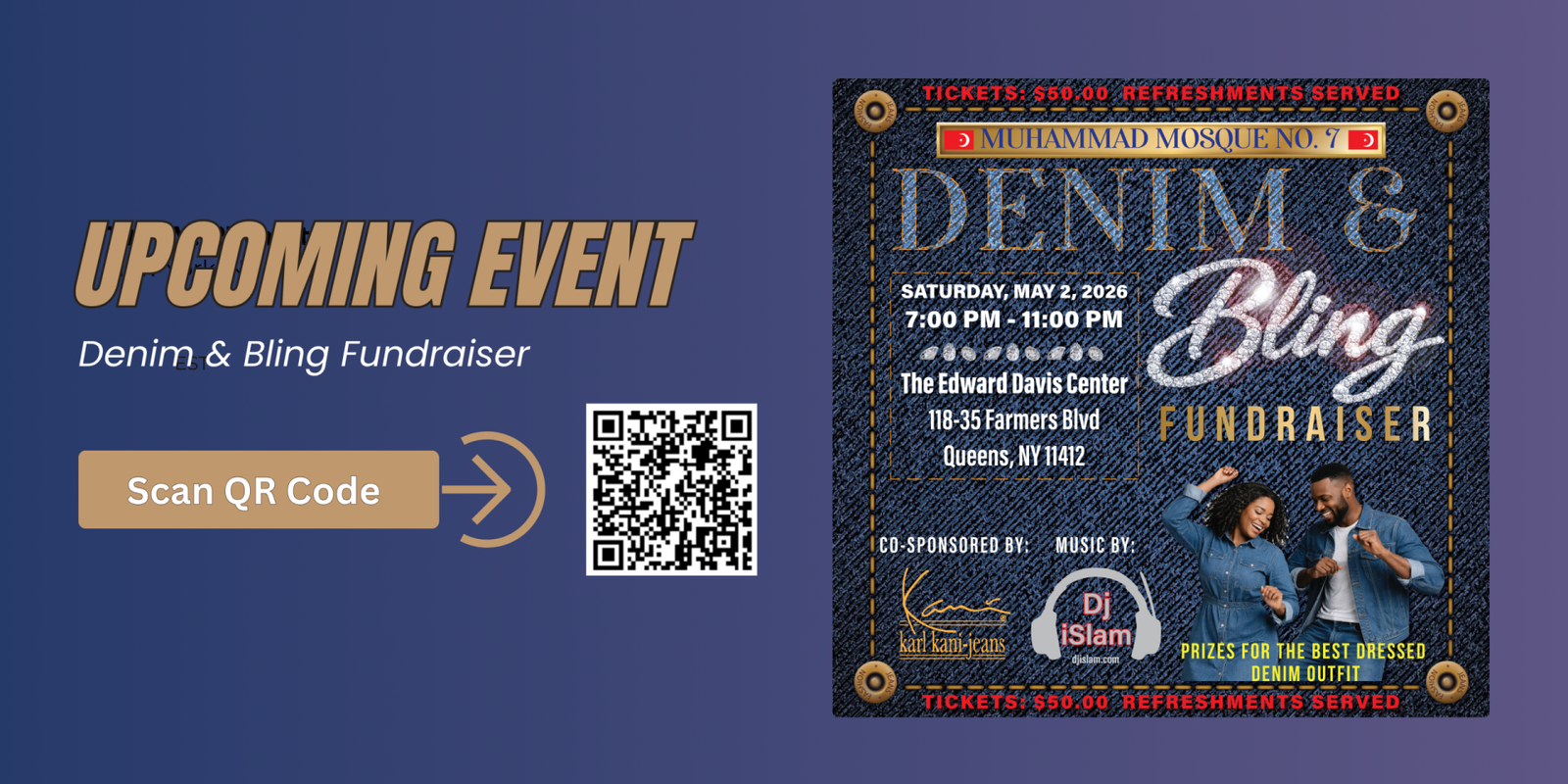 The historical Muhammad Mosque No. 7, located in the heart of Harlem, New York City, is the Eastern Regional headquarters of the Nation of Islam dedicated to spiritual advancement under the guidance of Allah (God), the teachings of the Most Honorable Elijah Muhammad, and His representative the Honorable Minister Louis Farrakhan, whose wisdom and leadership lays the foundation for spiritual, moral, and social development within our communities. This historic institution serves as a platform for disseminating this truth and applying the principles taught to the challenges faced by our community in the ongoing fight for Freedom, Justice, and Equality. All of our people who wish to experience the word of Allah (God) as it relates to our present-day condition and struggle for Freedom, Justice, and Equality are invited to reclaim their own and join the Nation of Islam.