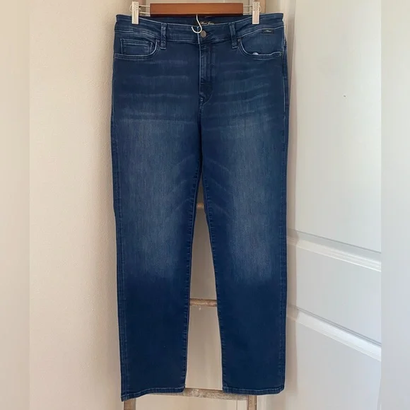 In great condition - only worn one time. Fits true to size. Great quality materials. Super flattering! Currently retails for $118Chic high-rise jeans with a straight leg cut. Deep blue hue. Ideal for everyday style.Your go-to jeans should have it all: stretch, softness, sustainability, and style. So meet your new go-to jeans - this straight-leg pair is finished in a rich indigo wash and made from incredibly comfy and eco-friendly Tence|™OverviewOur SuperSoft denim collection is our softest fabric yet, offering the perfect balance of structure, stretch, and long-lasting fit retention. This is a mid weight denim with a smooth texture and large amount of stretch. It's made with Tence|™ Lyocell, a wood-based fiber that delivers breathability and softness.• 44% Cotton, 42% Lyocell, 13% Polyester, 1% Elastane• 12.75 oz Denim Made in TurkeyItem: M1074680150How It FitsHigh Rise I Straight LegDesigned with a comfortable high-rise that sits at your natural waist, Kendra has a versatile straight leg that's always easy to wear. The classic style fits slim throughout the hip and thigh, with a streamlined shape that always feels modern.• 10" front rise• 15" back rise• 14.5" knee• 14" leg opening